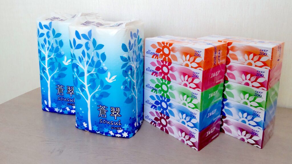 入札の結果、トイレットペーパー・ティシュペーパーは当社が落札ということになりました。ペーパータオルに関しましては、同価格になった商品があったようです。